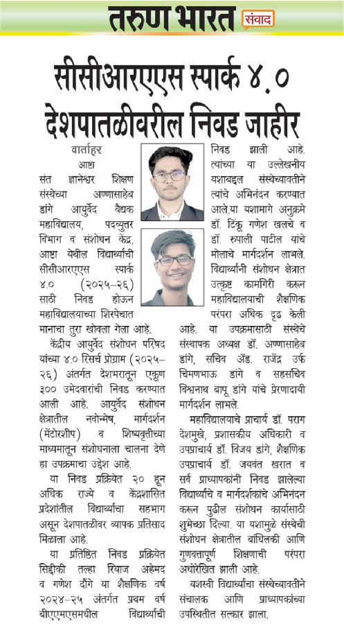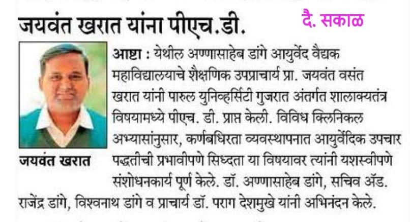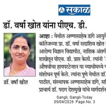(Affiliated to National Commission for Indian System of Medicine, AYUSH, Govt. of India, New Delhi, Maharashtra University of Health Sciences.,Nashik, Maharashtra)