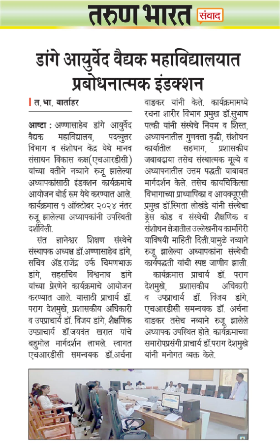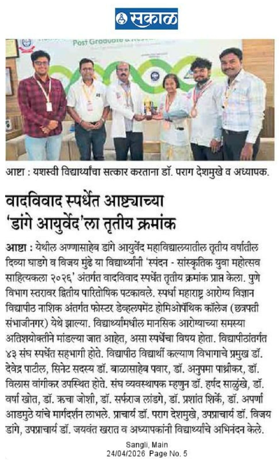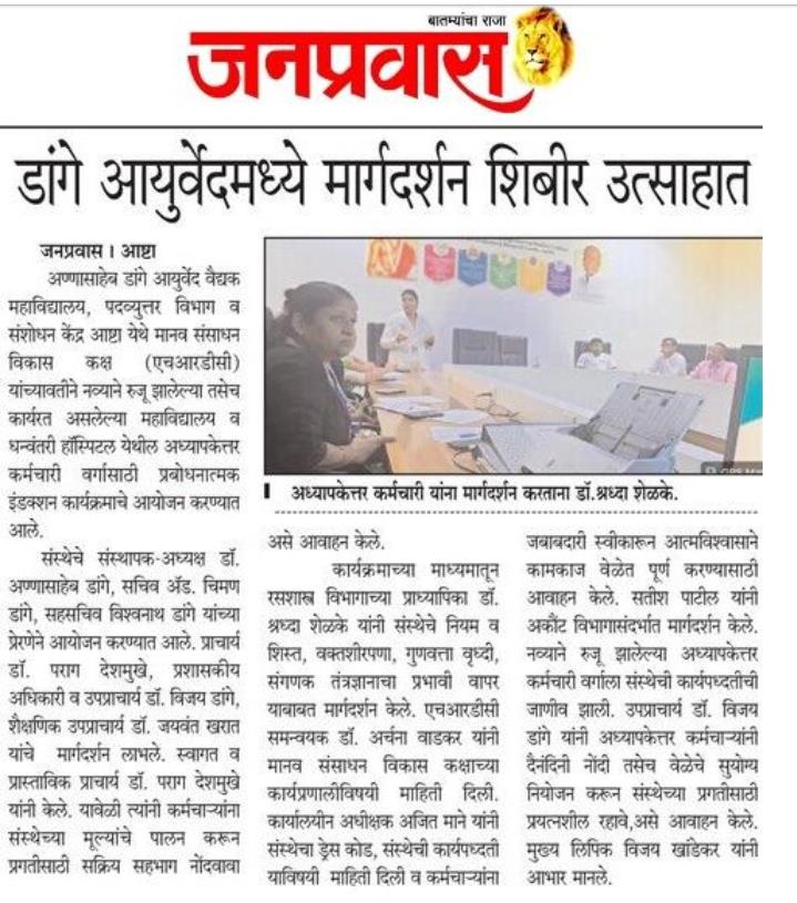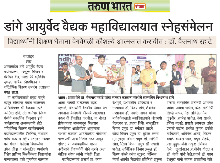We at Hon. Shri. Annasaheb Dange Ayurved Medical College, Post Graduate & Research Center, Ashta are committed out of dedication, to realize our vision by offering medical education & services to the society.